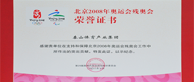 第二十九届奥林匹克运动会组织委员会为一号娱乐集团颁发北京2008年奥运会残奥会荣誉证书