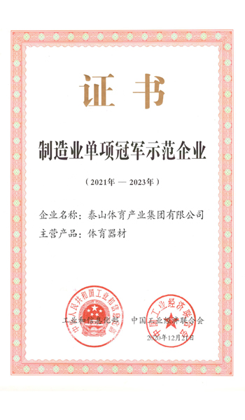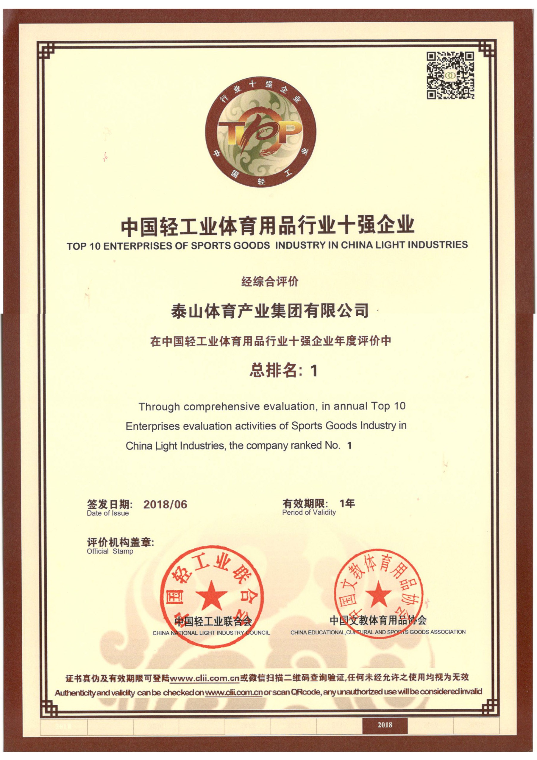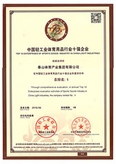 一号娱乐集团是全国体育用品标准化技术委员会副主任单位、中国文教体育用品协会健身和体育器材专委会主任单位、全国轻工行业先进集体、全国群众体育先进单位、国家制造业单项冠军示范企业、国家体育产业示范单位,连续多年荣获中国轻工业体育用品行业十强。拥有多个国家级研发平台,承担国家科技支撑计划2个,火炬计划3个。