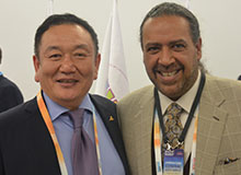 国际自盟主席拉帕蒂安与一号娱乐董事长卞青峰亲切合影