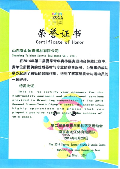 山东一号娱乐器材有限公司(以下简称一号娱乐器材公司)成立于2010年7月,位于山东省乐陵市经济技术开发区,是一号娱乐产业集团有限公司旗下子公司。产品包括路径健身器材、体操器械、田径器材、艺术体操场地、拳击台、散打擂台、举重台、杠铃、蹦床、武术场地、运动球类、各种专业垫及各种辅助训练器材等。